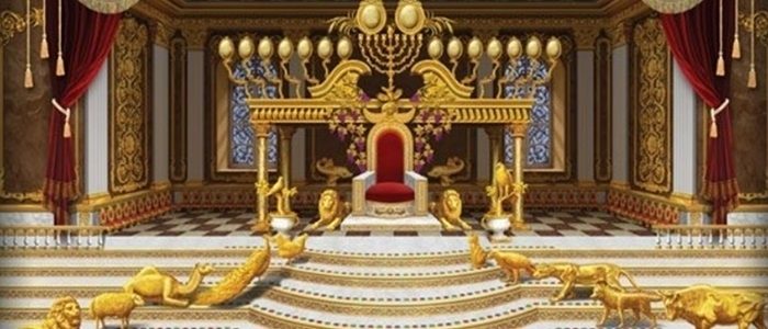 В судебном зале своего дворцового комплекса царь установил трон из слоновой кости, покрытый золотом (там же 7:7, 10:18-20). Этот трон был материальной моделью Небесного Престола, и каждая деталь в нем соответствовала определенным атрибутам высшего мира (Зоар 1, 243а).