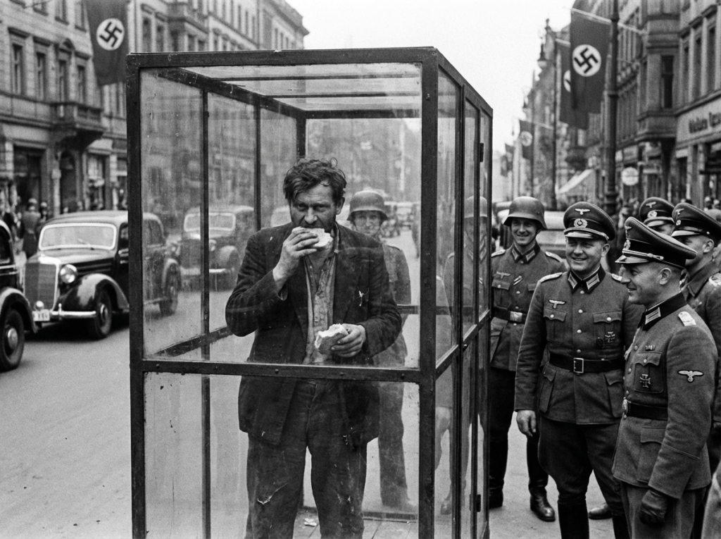 Это была поистине масштабная и невиданная акция: немцы заказали огромную стеклянную клетку, установили ее посреди лагеря и заключили туда пленного.